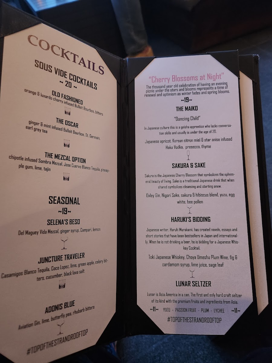 Introducing the menu at Top of the Strand Rooftop Bar, a hidden gem nestled atop 33 W 37th St, New York. This venue pairs stunning views of the Empire State Building with a thoughtfully curated menu that enhances the experience. Guests can indulge in sharable bar bites like White Truffle Cheddar Popcorn and an exquisite selection of house cheeses. For those with a sweet tooth, desserts include classic New York Style Cheesecake and rich Triple Chocolate Mousse Cake.